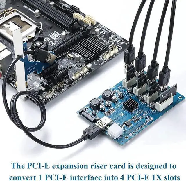 If you need more than one PCI-E x1 slot and don't have that many on your motherboard, then you can consider this adapter card. It consists of two parts, one is the main card, which is installed on the motherboard via the PCI-E x1 interface. The second is the device card, which has three or four PCI-E x1 strips on it and the two are connected together via a USB 3.0 cable. The device card is used for the transfer between PCI-E, PCI-E.