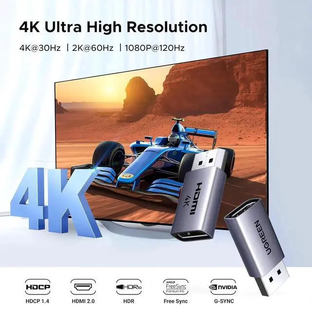 HDMI Adapter: UGREEN 4K DP to HDMI adapter easily turns DP port to HDMI port allowing to connect DP device (e. g. PC laptop or graphic card) to HDMI monitor projector HDTV for audio & video signal transfer. It deals with no HDMI port and is also a good way to protect your ports4K Immersive