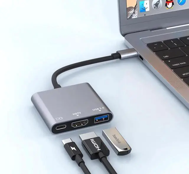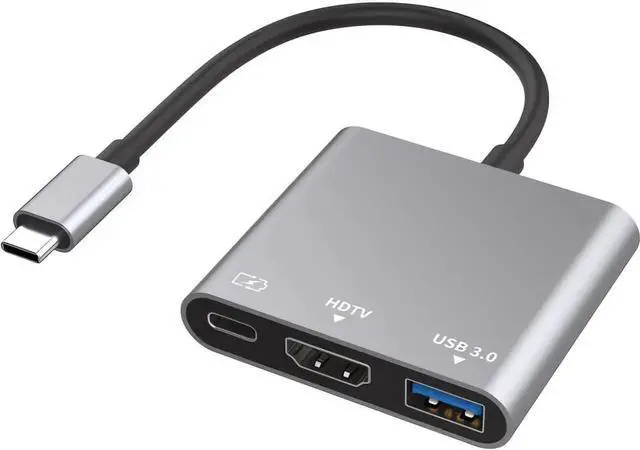 USB C to HDMI 3 in 1 Multiport Adapter hdmi to usb c expand one USB-C port to HDMI 4K@30hz output port a USB-C 100W power charging port and a USB 3.0 port. All ports can be used simultaneously4K UHD or Full HD 1080p video to HDTV can reach to max resolution of HDMI 4K@ ( 3840x2160P) 30Hz compatibility of most monitors projectors HDTVs and other devices with HDMI port. Perfect for home theater entertainment playing games video conference teaching etc. 100W PD fast charging port for fast charging of your USB C devices Please use USB-C PD charger plug to enjoy high speed charging.