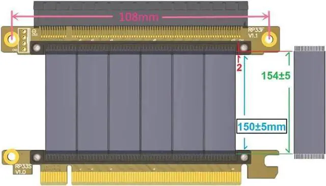 Connector 1: PCIe x16 male Connector 2: PCIe x16 female Left Angled