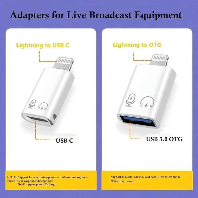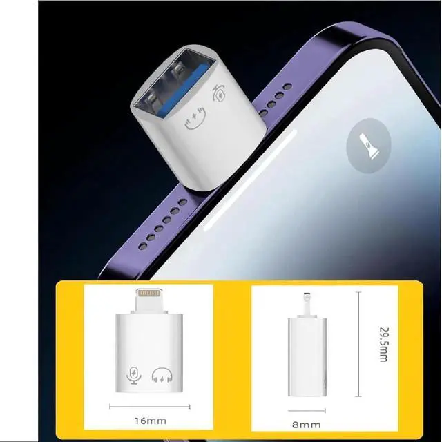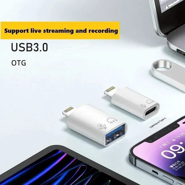 Lightning to USB-A Adapter The USB OTG adapter supports USB OTG (On-The-Go) function no driver is needed. You can easily connect usb c port for USB flash drive keyboard mouse MIDI keyboard lavalier microphone digital headphones and other USB Type C/USB A devices make data transfer so easy! (NOTE: not support chargingonly support headphones aux audio and microphone for live streaming)
