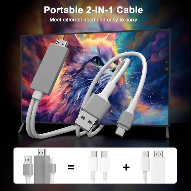 Plug and Play No need Power Supply No need WiFi No need Hotspot and Any Setting After connecting Without having to install any driver software or application Plug and play install in 10 seconds easy to achieve fast and stable connection automatic mirroring. This HDMI to iPhone 17 Pro Max cable adapter is so easy to use. Sturdy & Simply Design The 1080P HDMI to USB C cable for extra durability and user-friendly non-slip grips for easier plugging & unplugging. Premium alloy casing for better heat dissipation. A high-quality USB-C connector provides a snug connection with your devices for stable signal transfer.