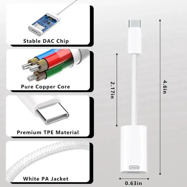 Sound Quality: Lightning to USB C adapter audio has a built-in lossless decoding DAC audio chip that ensures stable audio signal transmission supports double-sided insertion of Lightning interface headphones effectively filters current sound and noise and better provides Hi-Fi original sound making voice calls clearer and bringing a sense of superior listening experienceLightning