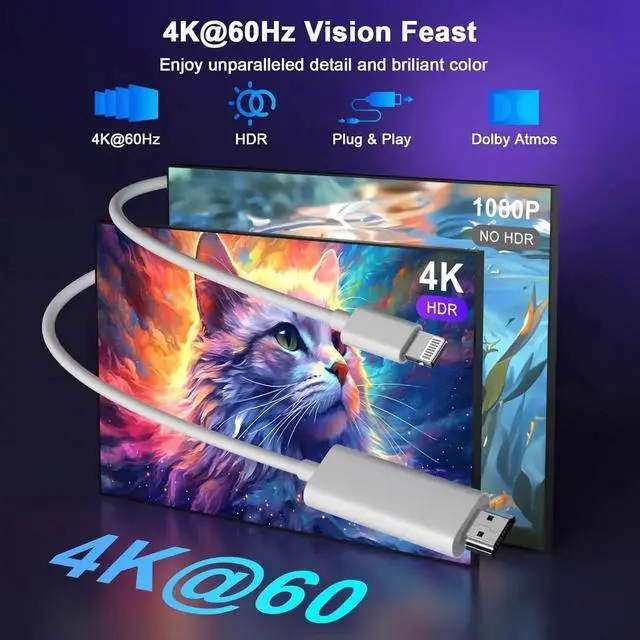 ![Alt view image 4 of 7 - [ MFi Certified] Lightning to HDMI Adapter for iPhone 14 to TV 1080P HDMI Cable Compatible with iPhone iPad 6.6FT Digital AV Adapter Sync Screen Connector for iPhone to HDTV Monitor Projector](https://c1.neweggimages.com/productimage/nb640/BK3NS25111806S0IA8A.jpg)