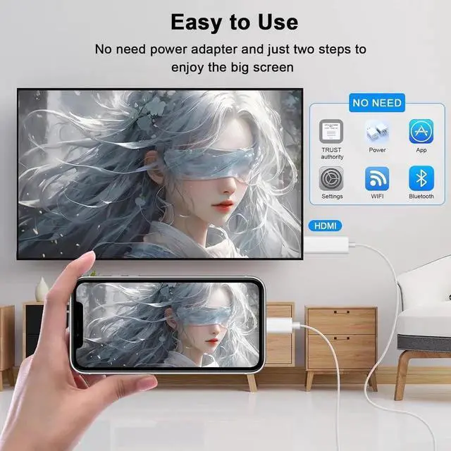 ![Alt view image 7 of 7 - [ MFi Certified] Lightning to HDMI Adapter for iPhone 14 to TV 1080P HDMI Cable Compatible with iPhone iPad 6.6FT Digital AV Adapter Sync Screen Connector for iPhone to HDTV Monitor Projector](https://c1.neweggimages.com/productimage/nb640/BK3NS25111806S0IFC1.jpg)