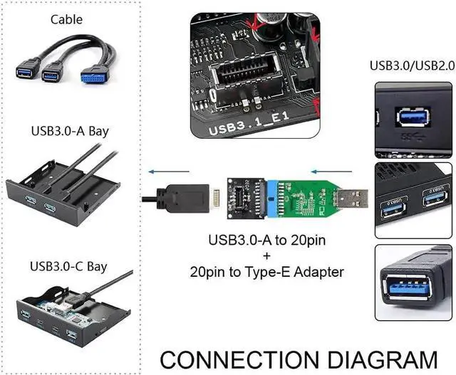 Connector1: USB 3.0 Front Panel Socket to USB 3.1 Front Panel Header.