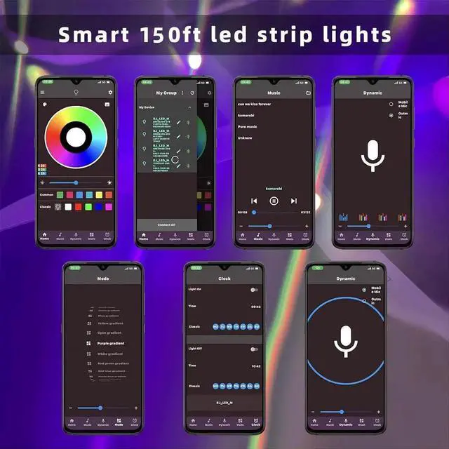[DIMMABLE&RESET BUTTON]: This 150feet RGB Strip Lights is Dimmable you can dim it to 25% /50%/75%100% bright by the remote controller. And have RED GREEN BLUE WHITE color option. On the Music strip lights controller It is different as IR remote it no direction needed to control?? [ATTENTION]: 24hours customer service USA customer service locally.