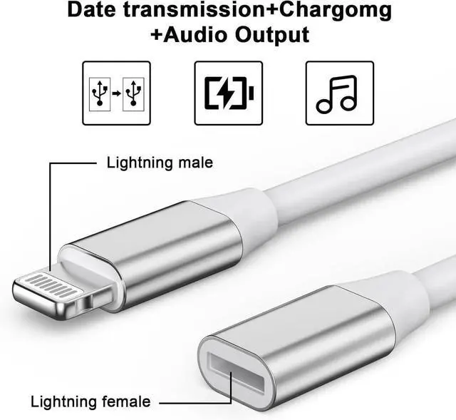 3 in 1 iPhone Charging Short Cable Audio+Charging+Data transmissionLightning extension adapter is much smaller and easier to carry. The male to female iphone extension cable was mainly designed for your iPhone iPad or tablet pad mini iPod touch with Speck X-Doria or Lifeproof defender and other phone cases. Specially designed male to female connector iPhone headphones adapter that works with most covers and cases. Multifunctional extension cableThe male to female extender docking pass through Video Audio picture music and data transmission. Power charge for your lightning devices. Pass both video audio music picture photo data and power charger via the male to female iOS phone extender cord adapter.