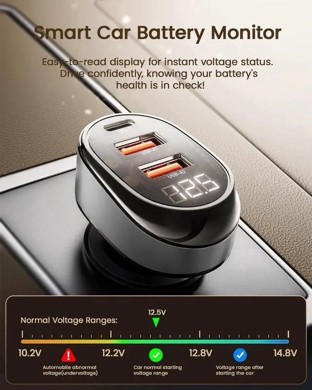 Voltage DetectionReal-time monitoring of car battery voltage to prevent car battery loss. 13.4V-14.8V is the normal voltage after the car starts. 12.2V-12.8V is the normal voltage before the car starts. Anything outside this range is abnormal