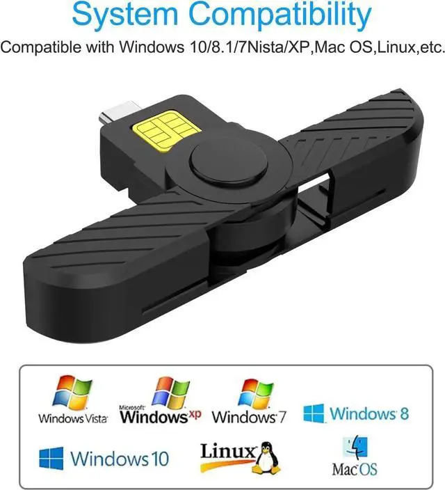 CAC Military Card CompatibilityThis USB C DOD Military CAC Smart Card Reader is for Government ID, National ID, ActivClient, AKO, OWA, DKO, JKO, NKO, BOL, GKO, Marinenet, AF Portal, Pure Edge Viewer, ApproveIt, DCO, DTS, LPS, Disa Enterprise Email,etc.