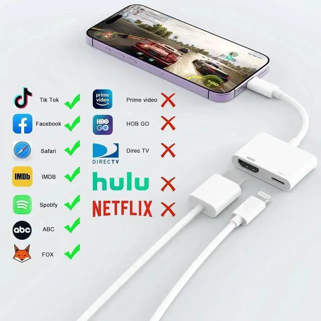 Please Note: This HDMI to Lightning Adapter Does Not support Netflix/HBO GO/Affinity Player/Prime/Hulu/DIRECTV and other Paid Videos in App.