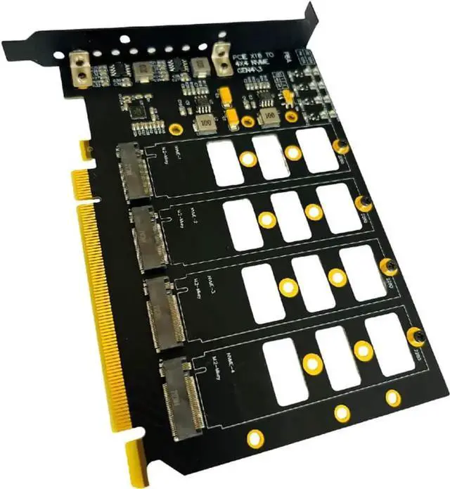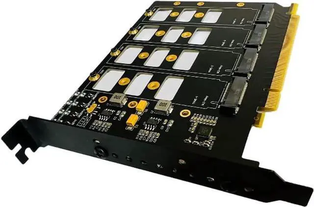It is suitable for 1 to 4xM. 2 NVMe SSD memory card transfer to PCIe x16 interface expansion. Support PCI Express4.0x4x4x4x4, support 4 M.2 NVMe full-speed slots.