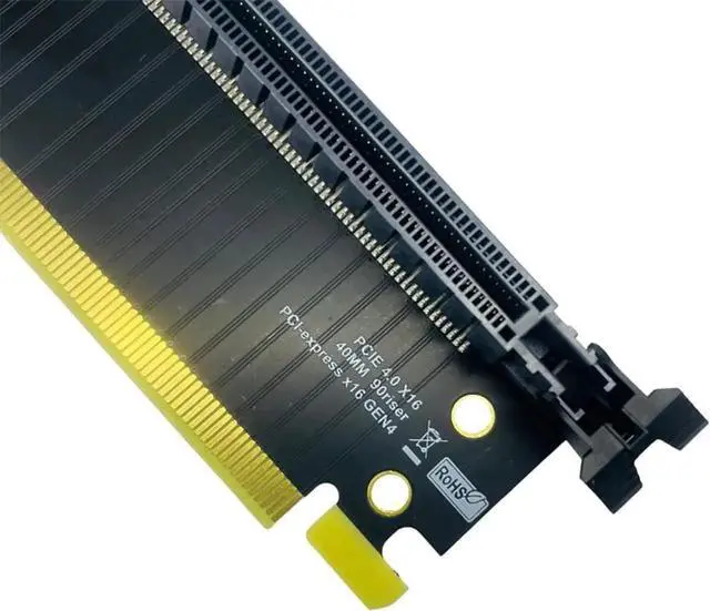 P16AC PCIe 4.0 X16 90° Right Angled Adapter: Suitable for computer case modification graphics card position. Impedance control 85 , power supply line is thickened and capacitance is increased.