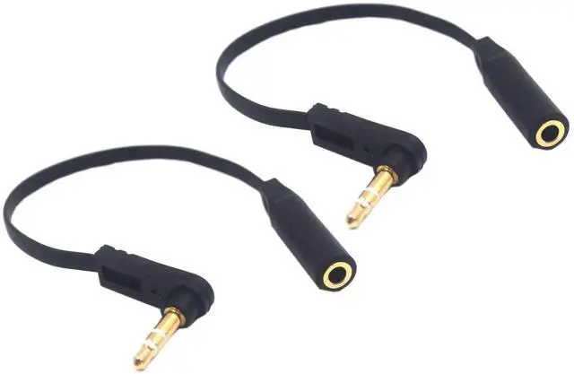 Cable Length -This cable is mini flat cable about 15cm / 6 inch. Notice - This 3.5 mm headphone Extension Cable is 3 pole (TRS) support audio signal only compatible with all universal 3.5 mm female. 90 Degree Angle - This TRS Audio Cable allowing you connect narrow space 90 degree angle can solve a lot of troubles 3.5 mm straight plug can not connect the trouble. Golden Plated Jack - 3.5 mm gold-plated jacks can be reduced signal loss slowed down the plug oxidation and extended the service life. Compatible Devices - This 3.5 mm Aux Cable work for car stereo home stereo smart phone laptop tablet PC CD MP3 MP4 headphone headset and other 3.5 mm plug devices.