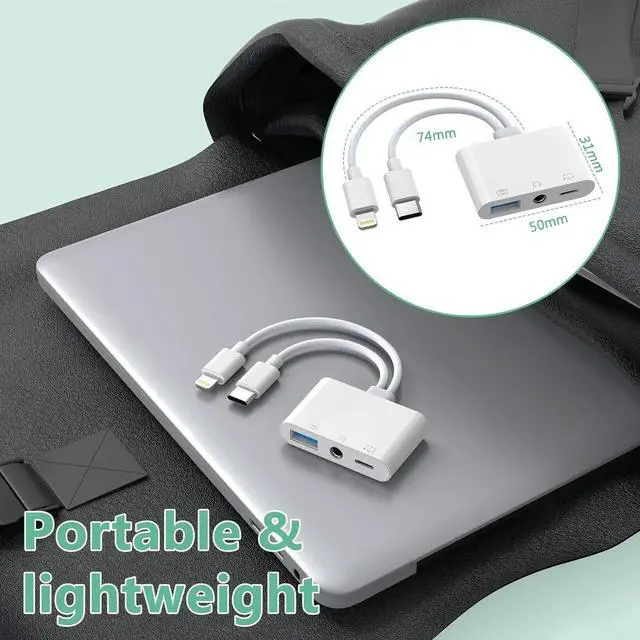 ) at a transfer speed of 480 Mbps / 5G bps It also supports connecting USB peripherals such as U disk U disk USB hub USB microphone USB camera electric piano keyboard mouse music keyboard PAD speakers etc. This iPhone USB Camera and 3.5 mm AUX headphone adapter equipped with small size compact design easily slips into a backpack purse or pocket. Any question of the product please do not hesitate to contact us in timeUpgraded multifunction compact and portable design powerful and easy to carry. Super Light Weight and Compact size for you to carry around.