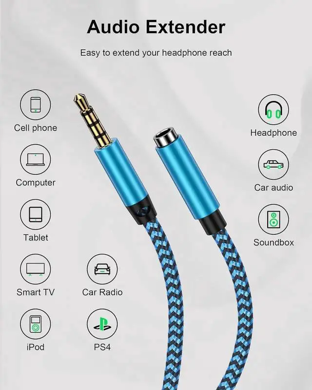 & 2Pcs: Enjoy extended reach with our 6-foot male-to-female aux cord extension designed to expand headphone or headset connections seamlessly. Comes with a 2-pack of 3.5 mm headphone extension cables perfect for enhancing audio experiences during travel office use in-car entertainment and shared enjoyment at home