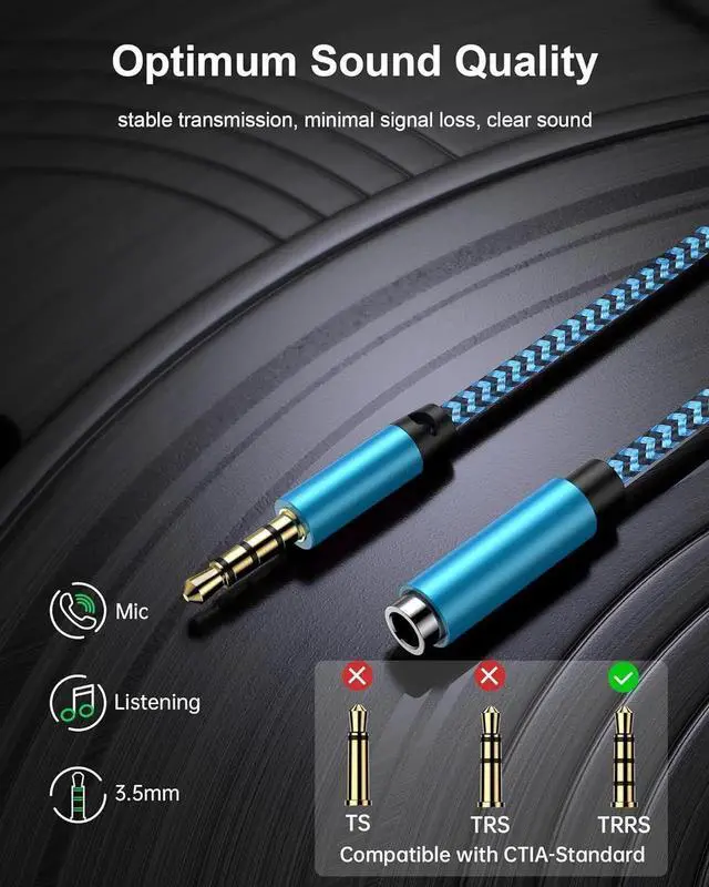 Extension Cable: Our TRRS extension audio cable follows strictly with CTIA standards. With its 4-conductor design (Tip Ring Ring Sleeve) it can easily link with both 3-pole and 4-pole 3.5 mm audio devices. Compared with conal TRS (3-Pole) extension cables having a cable that supports both audio and microphone channels is essential for those who are in activities like video calls conferences or gamingAudio Cable Extender 6FT