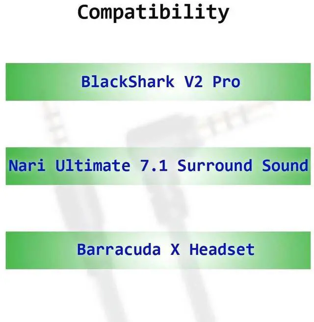 [Compability] - This replacement audio cord is compatible with BlackShark V2 Pro wireless headset this wire also compatible with Nari Ultimate Wireless 7.1 Surround Sound Headset and Barracuda X headset. [Clarity Sound Quality] - The high-quality audio cable transports clarity sound. [Easy to Use] - 1.5 Meter( 4.9 ft) length cable compatible with BlackShark V2 Pro wireless Gaming Headset with PC or other audio devices. [Durable TPE Brushed Materials] - The replacement cord is made of high-quality durable and wear-resistant tpe brushed rope. [What Youll Get] - 1. [1 Pack] Replacement Audio Cable. 2.