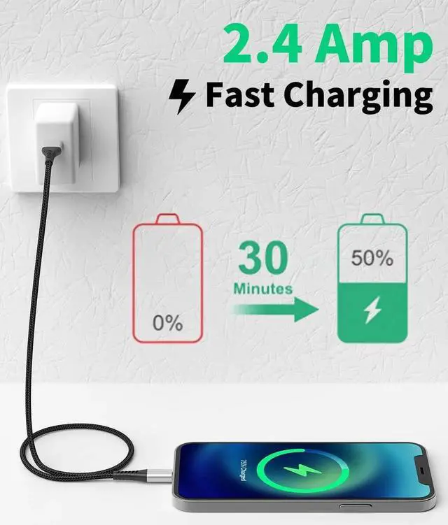 ![Alt view image 4 of 7 - 2 FT Lightning Cable [3Pack] Braided iPhone Charger Cord for Car 2 Foot Short USB to Lightning Cable for iPhone 14 13 12 11 Pro Max Mini 10 8 7 Plus XR XS SE/AirPods MFi Certified](https://c1.neweggimages.com/productimage/nb640/BK3NS25112008APB45A.jpg)
