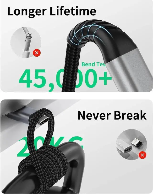 Durable: High quality aluminum alloy charging head and super abrasion resistant braided cord provide the the iPhone charger cord 2ft with a long lifespan reducing the breakage caused by bending can fully bear 40000+ bending test and more durableWide