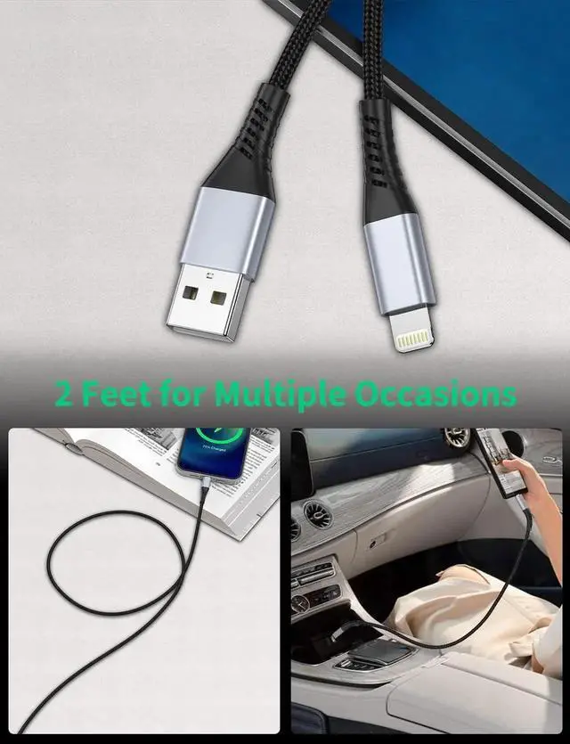 ![Alt view image 5 of 7 - 2 FT Lightning Cable [3Pack] Braided iPhone Charger Cord for Car 2 Foot Short USB to Lightning Cable for iPhone 14 13 12 11 Pro Max Mini 10 8 7 Plus XR XS SE/AirPods MFi Certified](https://c1.neweggimages.com/productimage/nb640/BK3NS25112008APAXAE.jpg)