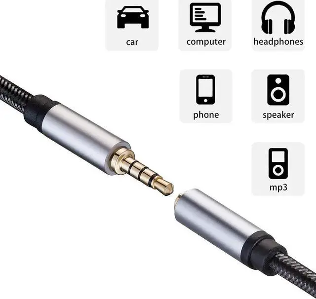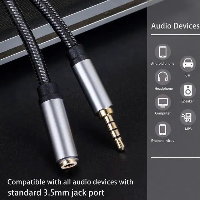 Universal Compatibility: With standard 3.5 mm jack this audio extension Cable fits most devices with 3.5 mm aux jack including laptop desktop Nintendo Switch PS4 Xbox One gaming controller smartphones tablet car system MP3/MP4 player smart TV headphone earphone speaker and more. For smartphones without 3.5 mm jack this audio extension cable also works with USB C to 3.5 mm converter and Lightning to 3.5 mm converter (Only works when the converter is supported by the phone).