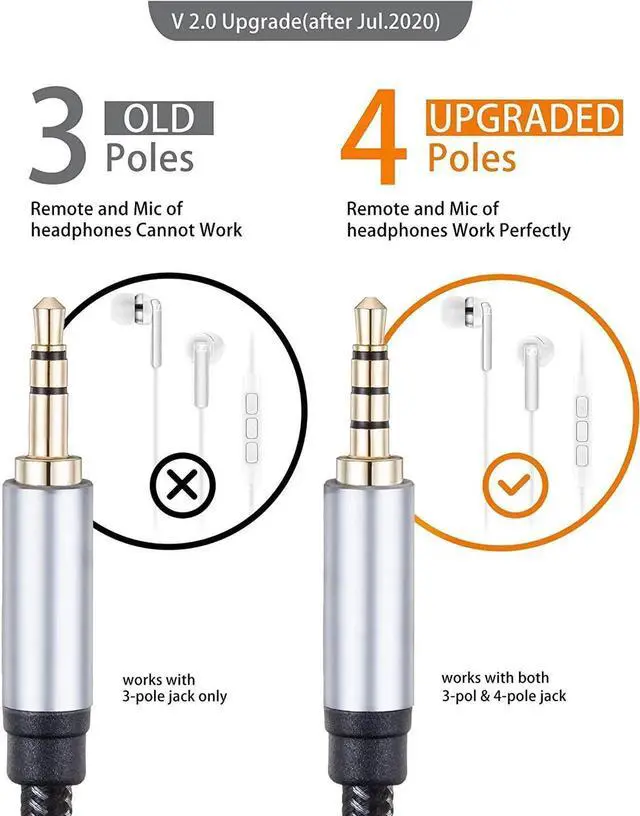 Extension Lead: Headphone Jack Extender Cable features 4-pole 3.5 mm jack and plug and supports microphone function of your headsets simultaneously sends and receives audio. The 3.5 mm aux cable allows you to answer phone calls while your hands are not available for example driving on road. It also enables game players to involve in game-chat and lets them communicate with partners without space limitation.
