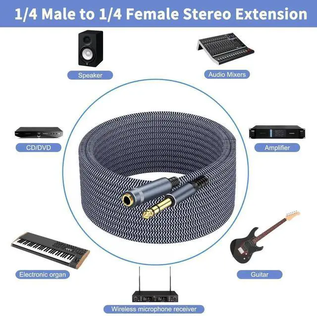 Extension Cable Compatible: it's can be used as a stereo extension cable for extending headphones guitars amplifiers musical instruments audio consoles mixer and more.