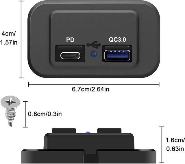 Mounting: The rv usb c outlet 12v wall mount can be mounted on a plane just a small hole to plug the wire with the black line attached to the negative and the red line to the positive. The blue light is always on when powered on and is easy to find in the darkMultiple