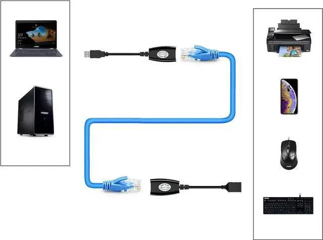 ?? High-strength environmentally friendly plasticLightweight and portable sturdy and durable and more stable for a long time.?? Compatible with multiple operating systemswin98 / Me / 2000 / XP / Visa / Win7 / Win8 / Win10 / Mac Osv 8.6 or higher.?? widely used Ideal for use with USB cameras printers web cams keyboard/mouse extensions and any other USB devices.?? No power requiredPlug and play more convenient connection.?? Please noteThe maximum distance between this USB device and the computer can reach 150 feet but more than 30 feet need to be completed with high-quality network cable! Otherwise it will lead to instability ordinary network cable under 30 feet is enough!