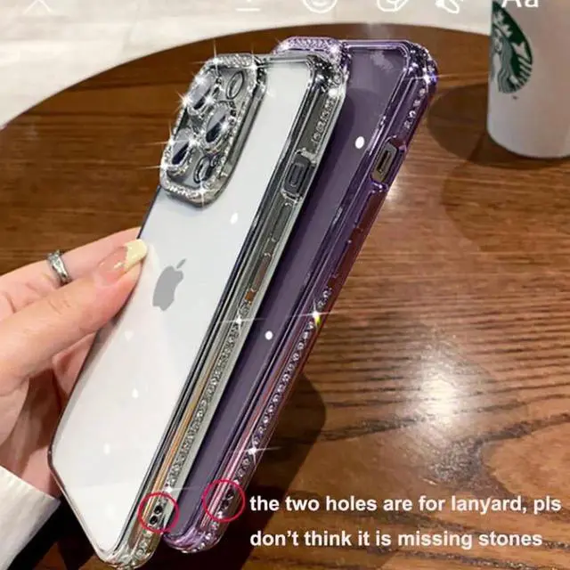 Note: There are 2 reserved lanyard holes on bumper of the case not missing rhinestones!!? Built-in Rhinestone Camera Lens ProtectorThe Phone case is designed with built in Shinny Glitter Diamond updated Glass Camera Lens Protector it offers well protection for your valued phone cameras from scratches and cracks Keeps camera lenses in top condition The glitter camera protectors not only protect the lens but also personalized decorations.? Luxury and StylishUsing electroplating technology beautiful plating gracefully Glitter bling sparkle diamond surrounds the bumper edges and camera edges a perfect demonstration of your love for luxury and fashion.??