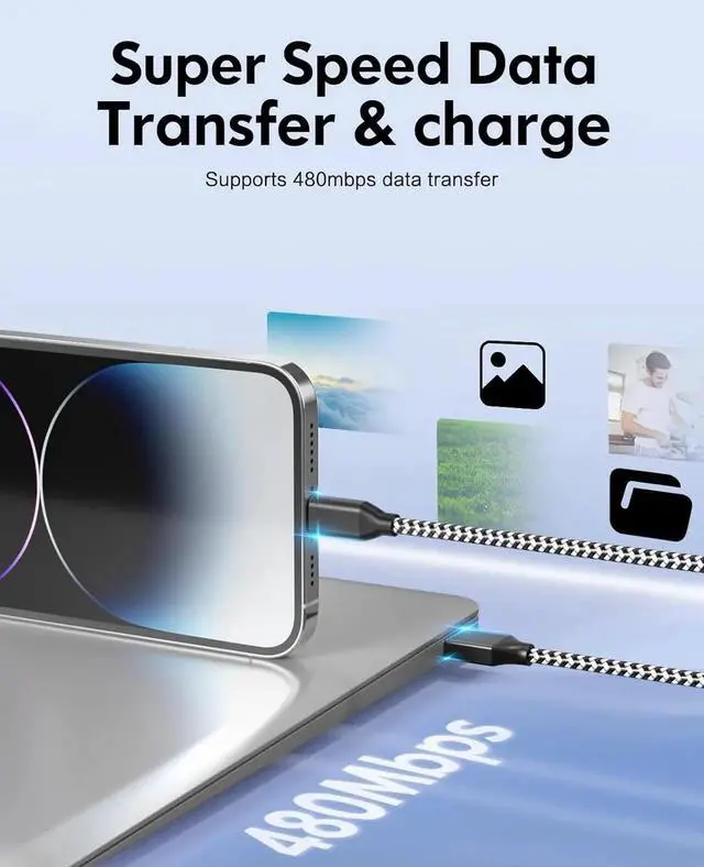 Flexible & Durable Nylon Braided braided nylon exterior withstands 30000+ bends flexible design resists tangling and withstands daily wear and tear. for car home and outdoor useMFi-Certified & Fast Charging MFi Certified to ensure compatibility and safety. Delivers faster charging speed compared to standard cables fully supporting iPhone fast chargingThicker Tinned Copper Core for Stable Power Upgraded tinned copper wires reduce resistance by enabling faster charging and stable current output. Prevents overheating even during extended use. High-Speed Data Sync & Charging Built-in advanced copper core ensures stable data transfer (up to 480Mbps) while charging. Sync photos music and files seamlesslyWide Compatibility Works with iPhone 14/13/12/11/Pro/Max/XR/XS/X/8/7/6/SE iPad iPod and other Lightning devices.