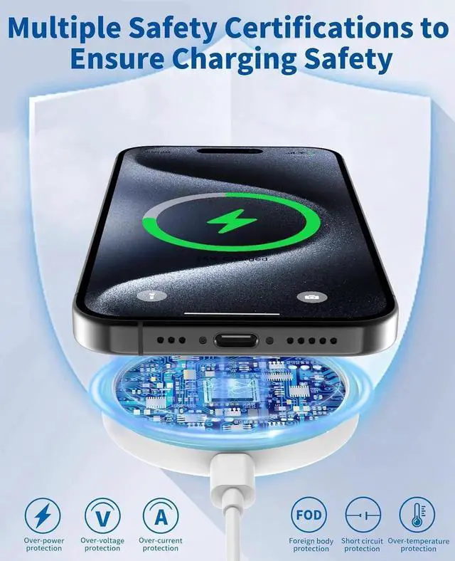 Magnetic Alignment: The built-in magnetic module ensures precise alignment and secure attachment for effortless wireless charging every time.
