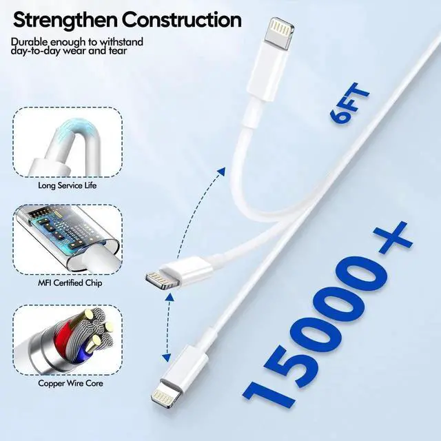 ![Alt view image 4 of 7 - iPhone Charger [ MFi Certified] Charger Cord 2Pcak 6FT Lightning Cable Fast Charging with Wall Charger Block Travel Plug Brick Adapter for iPhone 14/13/12/11/XS/XR/SE/7/8/8 Plus/AirPods](https://c1.neweggimages.com/productimage/nb640/BK3NS2511240AY56567.jpg)
