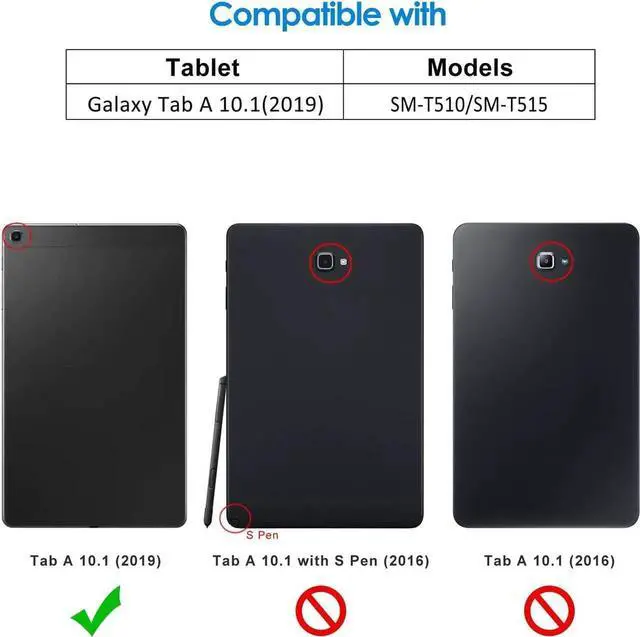 Specially designed for Galaxy Tab A 10.1 2019 (SM-T510/T515). Not Fit for 2016 Released Tab A 10.1 or any other model device.