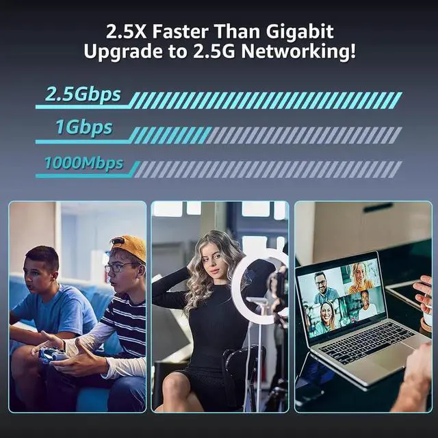 ?? Ultra-Fast 2.5G Network Speeds Upgrade your desktop PC with this 2.5G network card delivering 2.5G bps high-speed connectivity 2.5 x faster than traditional Gigabit Ethernet. Ideal for gaming 4K streaming large file transfers and cloud computing ensuring ultra-low latency and seamless performance.?? Universal Compatibility & Easy Setup This 2.5G b PCIe network card supports Windows 11/10/ 8.1 /8/7 Linux and Mac OS. Plug-and-play on Windows 10 with an easy driver download for other systems. Perfect for workstations gaming rigs servers and home networking.?? Flexible Installation with Dual Brackets Designed for various PC setups this PCIe 2.5G b network card includes both standard and low-profile brackets making it compatible with full-size desktops mini PCs workstations and small form-factor computers.