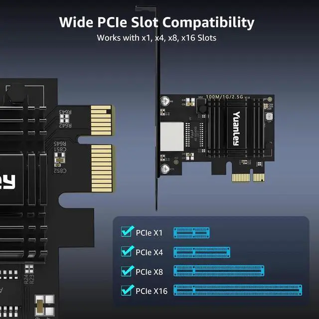 Works with PCIe x1 x4 x8 and x16 slots for seamless integration.?? Stable & Reliable Performance Built with an advanced Realtek RTL8125B chip this 2.5G PCIe Ethernet card ensures efficient data transfer reduced latency and a stable network connection. The integrated heat sink improves heat dissipation ensuring long-lasting durability and uninterrupted performance. Supports Wake on LAN PXE Boot and VLAN tagging for advanced networking.?? Professional Customer Support & Warranty We offer lifetime technical support to help you with setup troubleshooting and performance optimization. If you have any issues our team will respond within 24 hours to ensure a smooth and reliable networking experience.