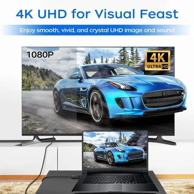 Unidirectional DP to HDMI cableDirectly connects a DisplayPort (DP DP++ DisplayPort++) equipped computer to an HDTV monitor or projector with HDMI. Plug and play no driver requiredExpand or mirror modeTransfer high-definition audio and video from your computer to an HDTV for video streaming or gaming extended desktop mode and mirrored displays mode are make you better experiences to play games enjoy home theater or have a presentation4K UHD ResolutionSupports video resolution up to UHD 4K (3840x2160) 1920x1200 / 1080P (Full HD) and flawless audio pass-thru for uncompressed digital 7.1 5.1 or 2 channels. Work for business speech meeting room or home entertainmentSuperior constructionDisplayport to HDMI Cable features Gold-plated connectors resist corrosion and combines with bare copper conductors and foil & braid shielding to ensure optimal signal transmission and reliable connectionSafe connectionDisplayPort connector with a latch to improve connection stability please press the release button before inserting or plugging out.