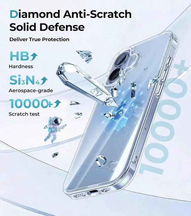 Protection: Slim Yet Tough HB-rated aerospace crystal backplate stops scratches from keys coins and daily abrasions. Enjoy peace of mind with MIL-STD-810H 15ft drop protection while staying slim and pocket-friendly - no bulk no interference with wireless chargingResponsive Buttons & Raised Edge Defense Precision cutouts for iPhone 17 Case (Restore nake phone feel). 2.5 mm raised camera bezel + 1.5 mm screen lip guard against surfaces. Buttons are highly responsive and comfortable to press a flawless fit you can trustErgoGrip