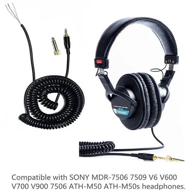Replacement audio Spring Relief cable great fit for SONY MDR-7506 mdr7509 mdrV6 mdrV600 mdrV700 mdrV900 mdr7506; Audio Technica ATH M50 ATH M50s headphones. Cable length is 6ft and it also can stretch up to 10ft meet your different needs. Better sound range strong and solid quality better extension of high frequencies. Premium premium metal housing Incredibly durable and with 6.5 mm jack. 12months warranty for this replacement sony cable.