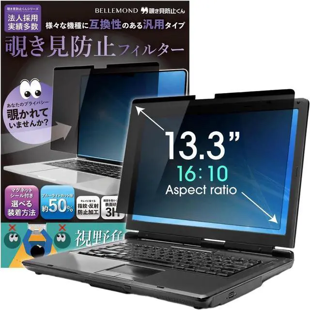 BELLEMOND 13.3 Inch 16:10 Magnetic Laptop Privacy Screen Filter - Computer Monitor Privacy Shield Removable & Reversible Anti-Slip Privacy Screen Protector with Anti Glare & Blue Light Reduction - 1PC