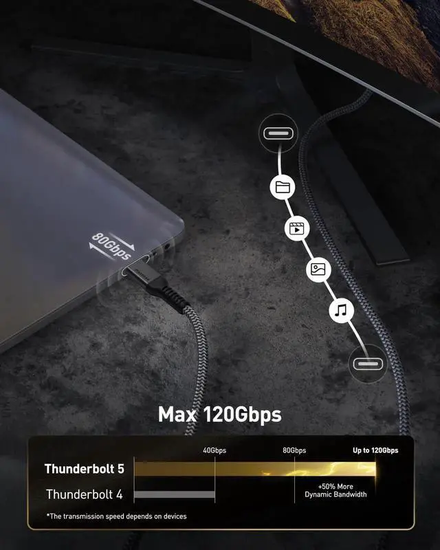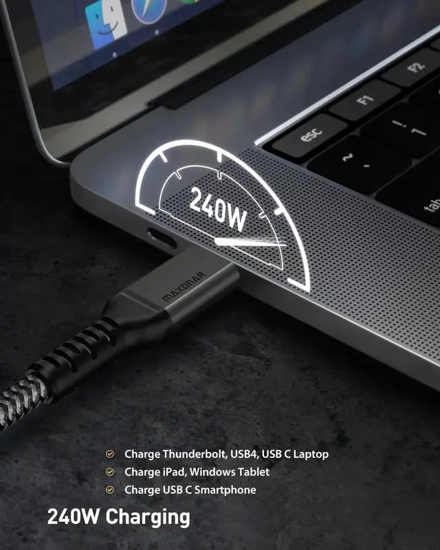 Maxonar 3FT Thunderbolt 5 Cable 80Gbps, up to 120Gbps Bandwidth Boost, 240W Power, Dual 8K Display, Compatible with Thunderbolt 5/4, USB4, MacBook Pro/Air, iPhone 16 Series, Premium Braided Cable