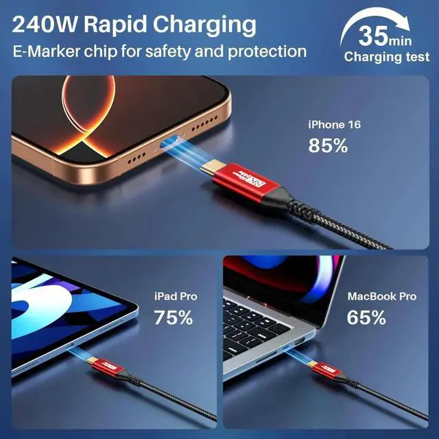 ![Alt view image 4 of 5 - 40Gbps USB 4 Cable for Thunderbolt 4 [Red, 1FT-2Pack], 12 inch High-Speed Data Transfer, Short USB C Monitor Cable 8K@60Hz/4K@144Hz, 240W Fast Charge for MacBook, iPad, Mac mini,SSD enclosure, Docking](https://c1.neweggimages.com/productimage/nb640/C2GMS2512080J3E4G14.jpg)