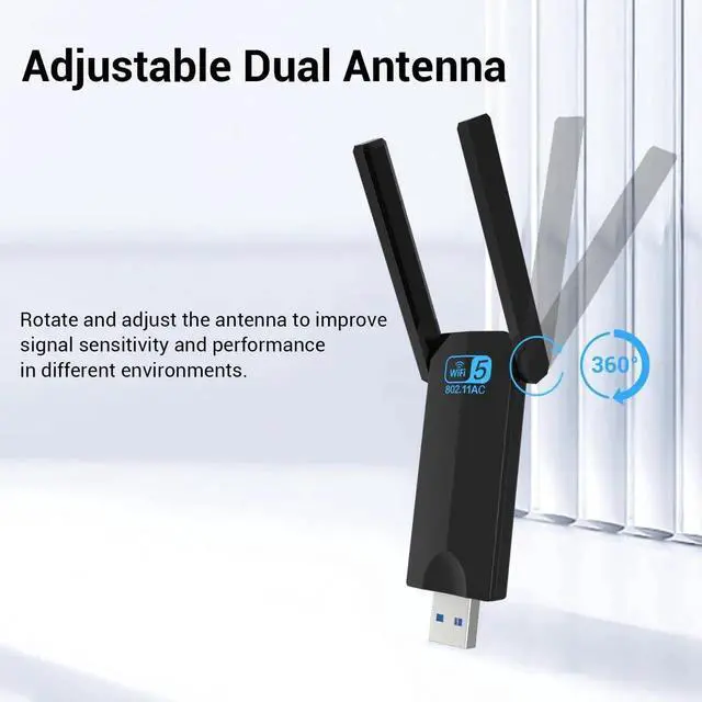 WiFi USB Wireless Adapter for Desktop - 1300Mbps WiFi Adapter for Desktop PC Laptop 5Ghz/ 2.4G hz 802.11 ac USB Wireless Adapter with 5dBi Dual Band Antenna for PC WiFi Adapter Supports Win 7/10/11
