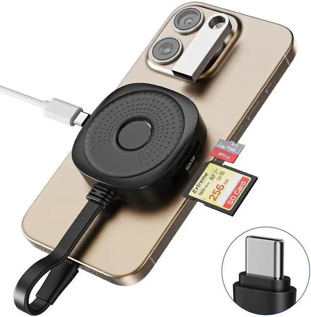 Magnetic SD Card Reader USB C, Magsafe Mico SD Card Reader with 4.0 SD/TF Slot, USB-A Port, USB-C 100W PD Charging, Magnetic Memory Card Reader with 40Gbps USB 4.0 Data Transfer for iPhone 16/15