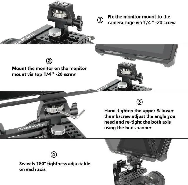 1 x Swivel and Tilt Adjustable Monitor Mount with 1/4"-20 Anti-Twist Mount
