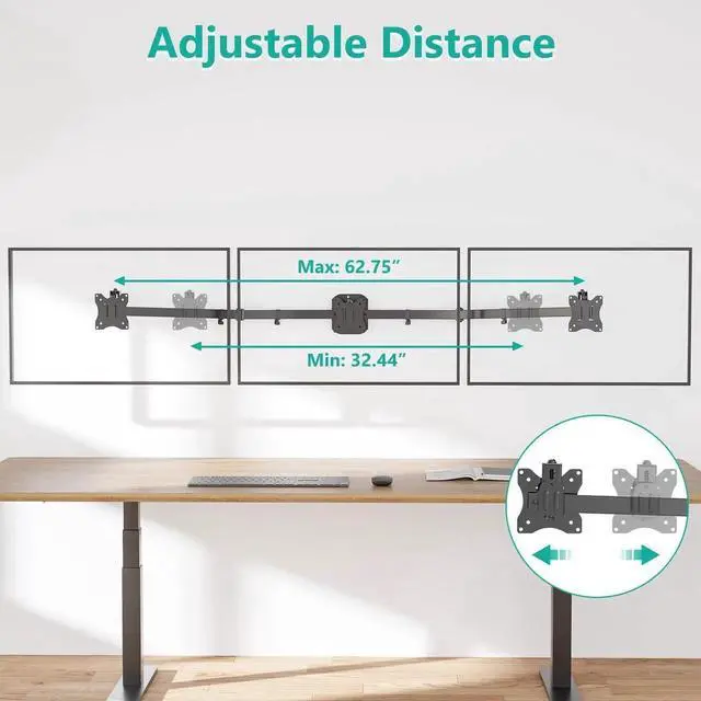 Sturdy Heavy duty Monitor Arm:This triple monitor wall mount features a built-in cable management system for clutter-free wire organization, paired with a heavy-duty wall-mount design for rock-solid stability. The sl
