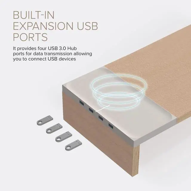 BUILT-IN EXPANSION USB PORTS: It provides four USB 3.0 Hub ports for data transmission allowing you to connect USB devices such as desktop computer, digital cameras, phones, external hard drives, flash drives, and printers to one convenient place.