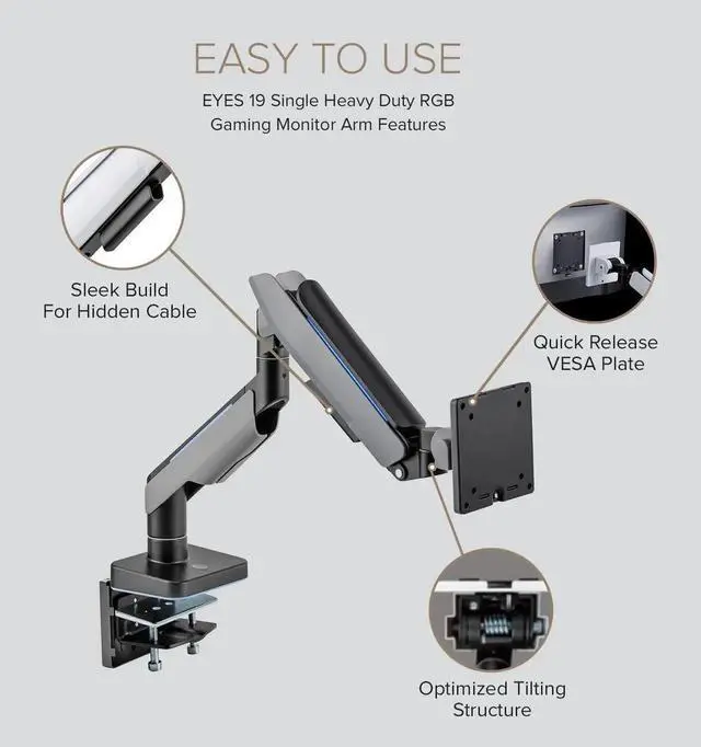 ULTRAWIDE MOUNT ARM: The Eyes 19 Single is a desk monitor arm designed to make your experience working at an ultrawide monitor more comfortable and ergonomic. Using this monitor arm you can position your computer screen to a height that suits you, supporting good posture and a healthier viewing position.