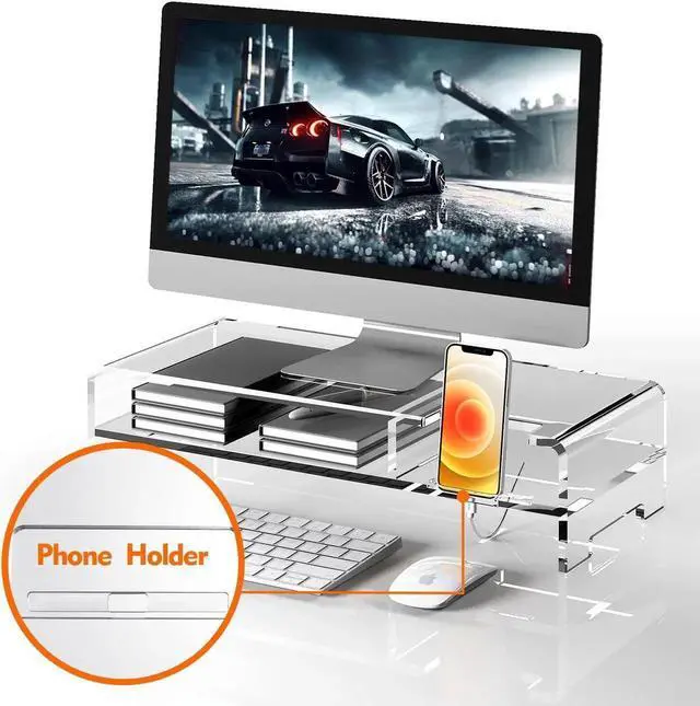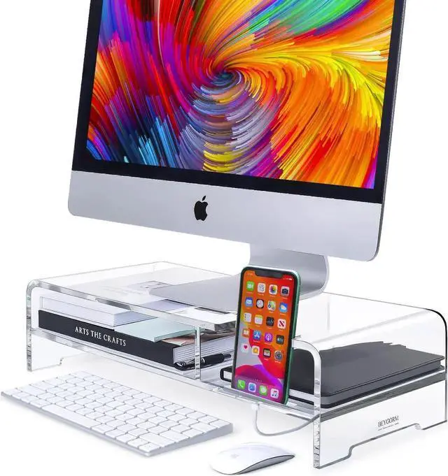BEYGORM Acrylic Monitor Stand Riser & Acrylic Coffee Bar Station Organizer for Countertop